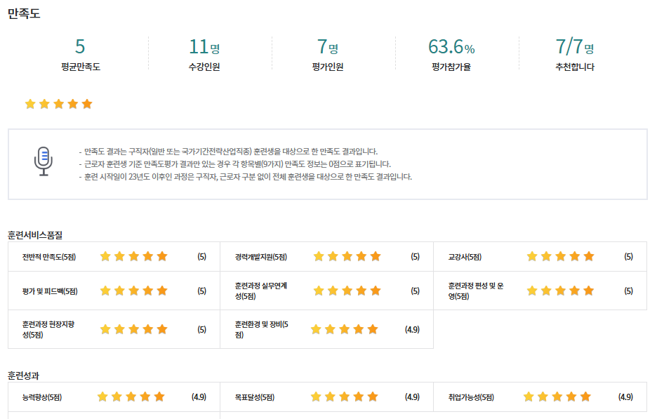 * 아래 수강후기는 고용24에서 작성된 수강후기의 캡쳐입니다.