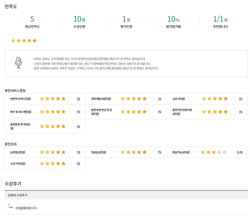 * 아래 수강후기는 고용24에서 작성된 수강후기의 캡쳐입니다.