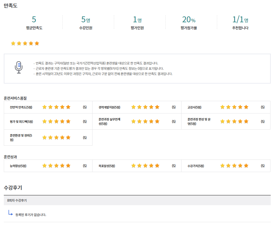 *아래 수강후기는 HRD-Net에 작성된 실제 수강후기의 캡처입니다.