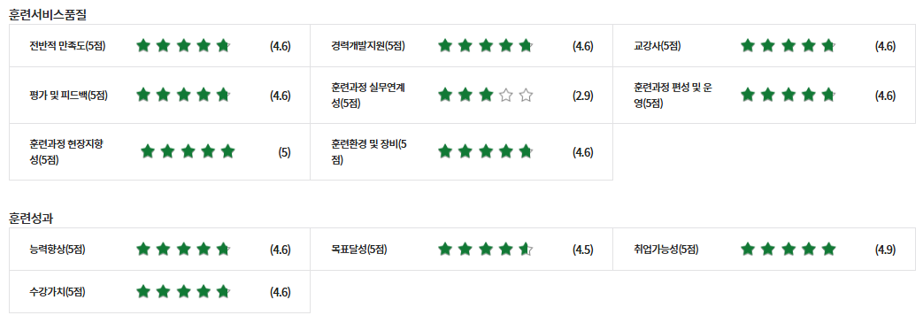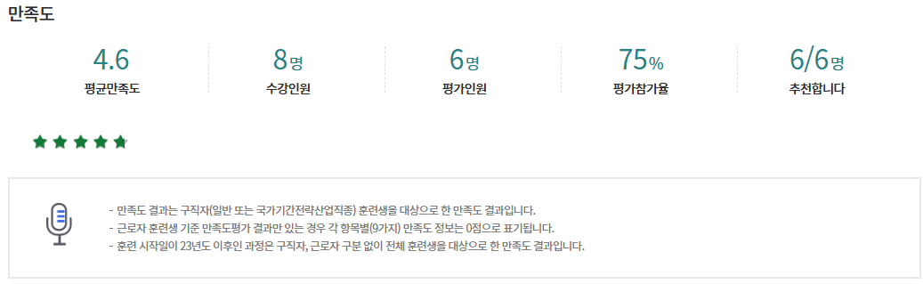 * 아래 수강후기는 고용24에서 작성된 수강후기의 캡쳐입니다.