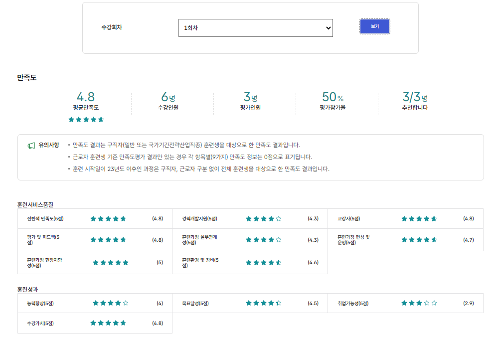 * 아래 수강후기는 고용24에서 작성된 수강후기의 캡쳐입니다.