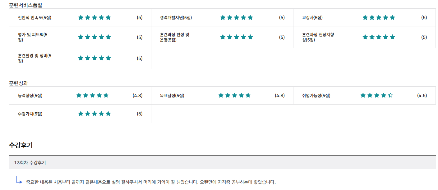 * 아래 수강후기는 고용24에서 작성된 수강후기의 캡쳐입니다.