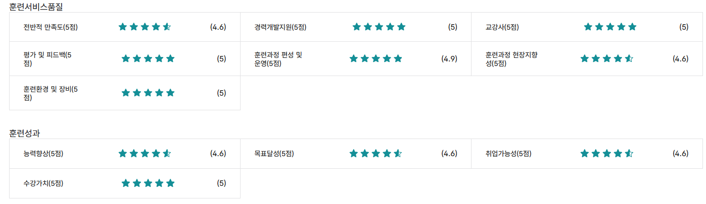 * 아래 수강후기는 고용24에서 작성된 수강후기의 캡쳐입니다.