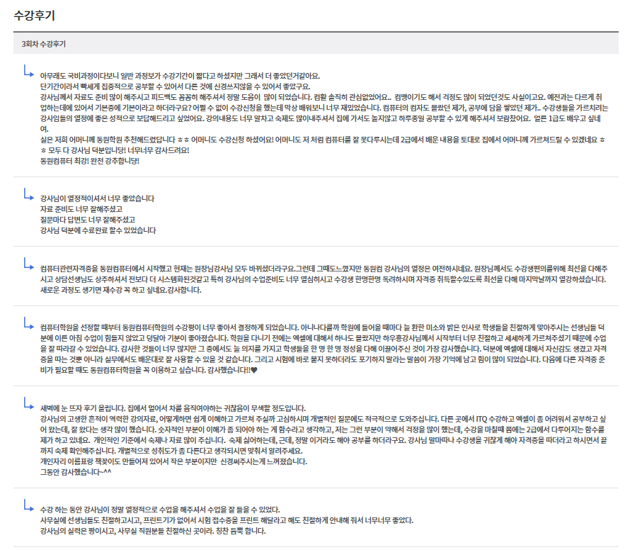 (실제 수강후기는 아래 링크로 가시면 확인 하실 수 있습니다.)