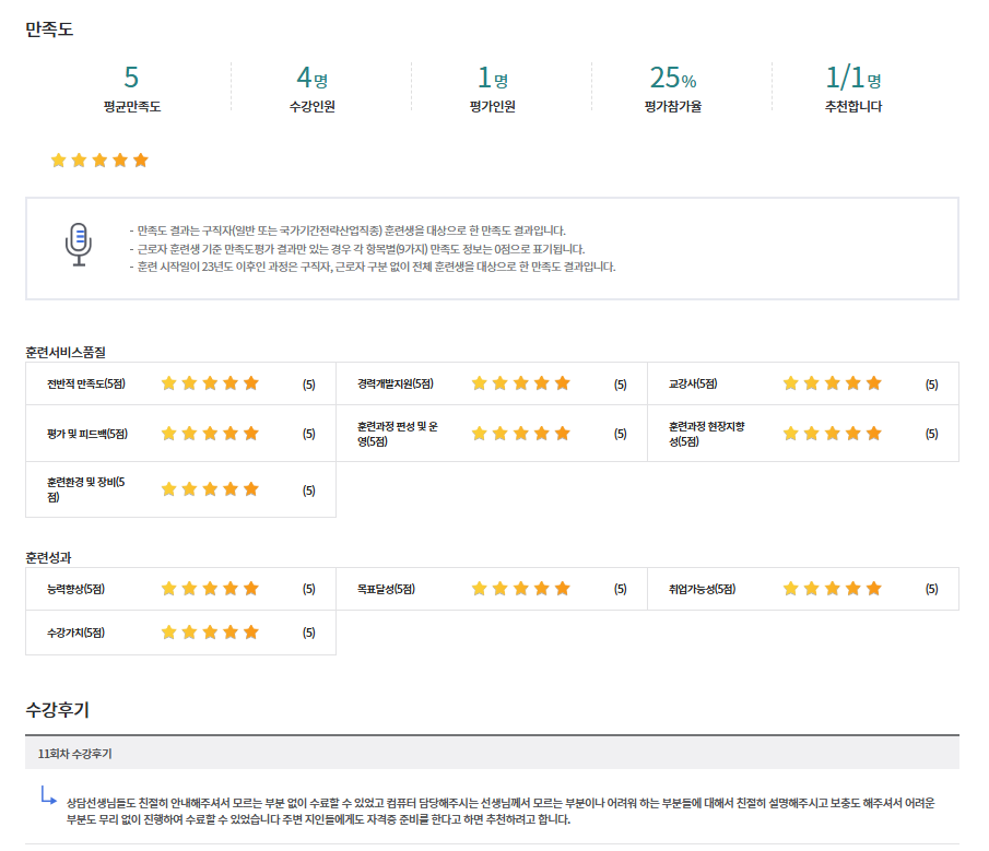 * 아래 수강후기는 고용24에서 작성된 수강후기의 캡쳐입니다.
