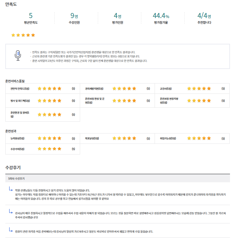 * 아래 수강후기는 고용24에서 작성된 수강후기의 캡쳐입니다.
