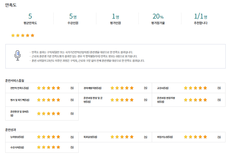 * 아래 수강후기는 고용24에서 작성된 수강후기의 캡쳐입니다.