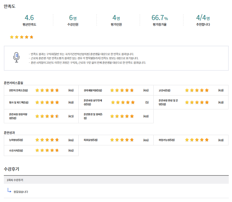 * 아래 수강후기는 고용24에서 작성된 수강후기의 캡쳐입니다.