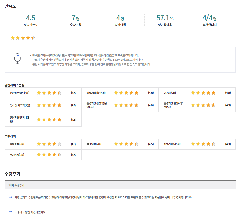 * 아래 수강후기는 고용24에서 작성된 수강후기의 캡쳐입니다.