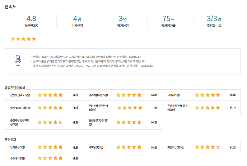 * 아래 수강후기는 고용24에서 작성된 수강후기의 캡쳐입니다.