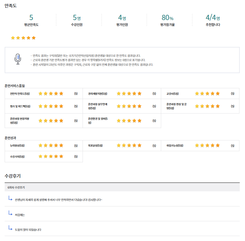 * 아래 수강후기는 고용24에서 작성된 수강후기의 캡쳐입니다.