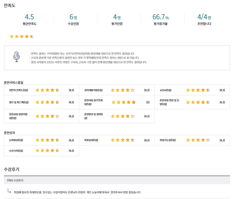 * 아래 수강후기는 고용24에서 작성된 수강후기의 캡쳐입니다.