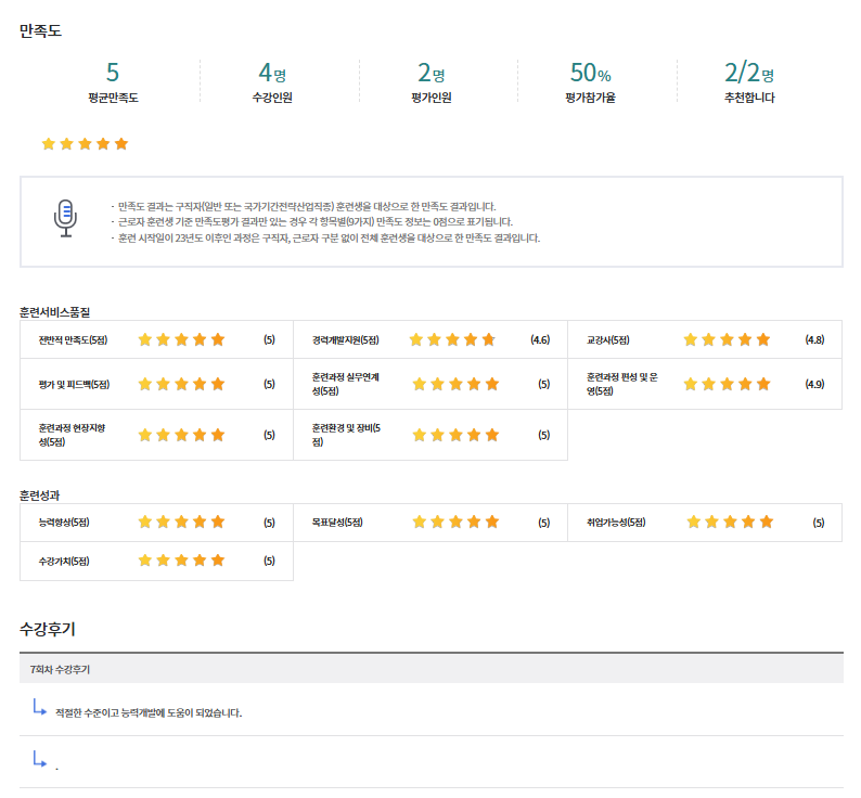 *아래 수강후기는 HRD-Net에 작성된 실제 수강후기의 캡처입니다.