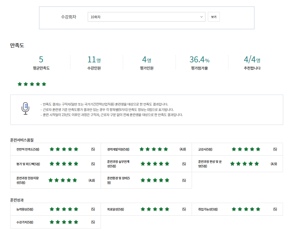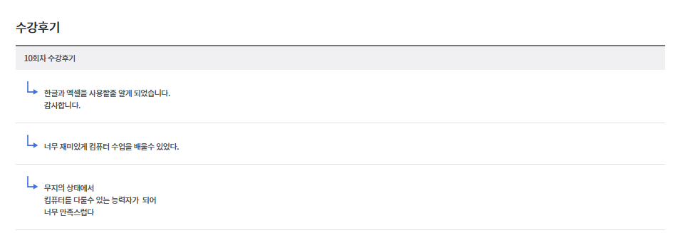 * 아래 수강후기는 고용24에서 작성된 수강후기의 캡쳐입니다.
