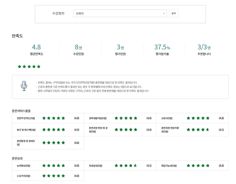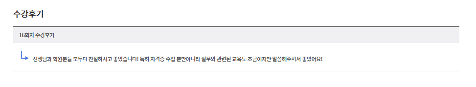 * 아래 수강후기는 고용24에서 작성된 수강후기의 캡쳐입니다.