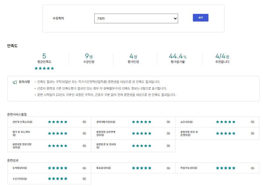 * 아래 수강후기는 고용24에서 작성된 수강후기의 캡쳐입니다.