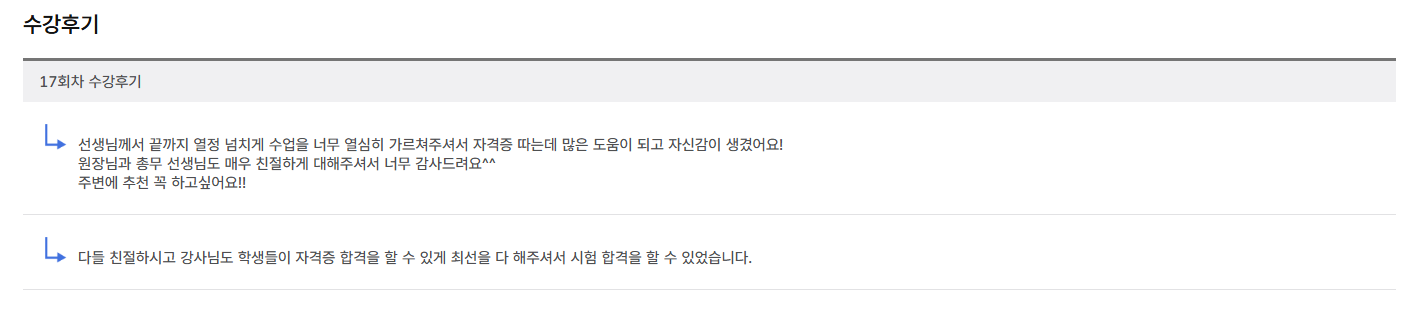 * 아래 수강후기는 고용24에서 작성된 수강후기의 캡쳐입니다.