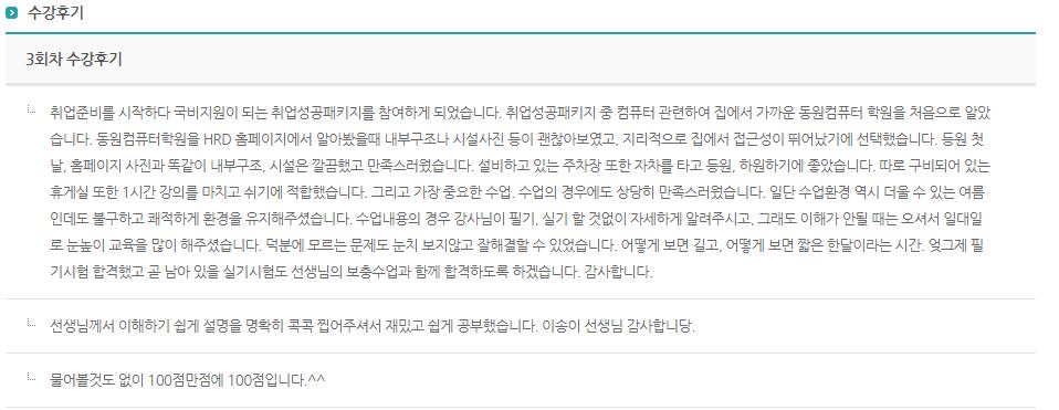 + Home > 커뮤니티 > 수강후기