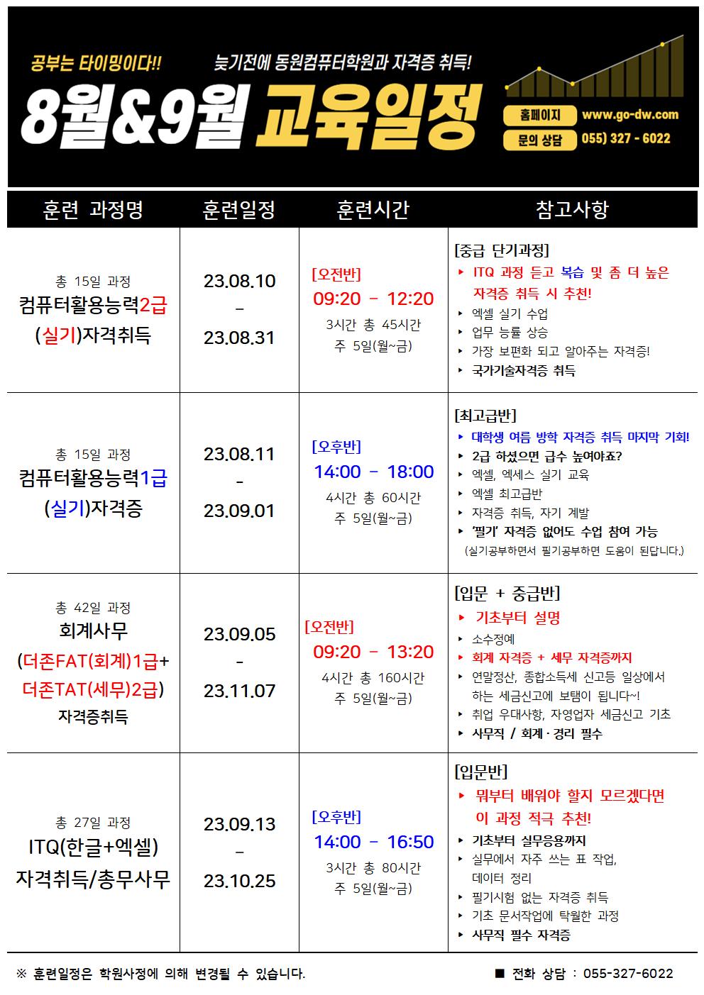 ▶ ITQ, 회계 과정은 상담 전화 바랍니다.