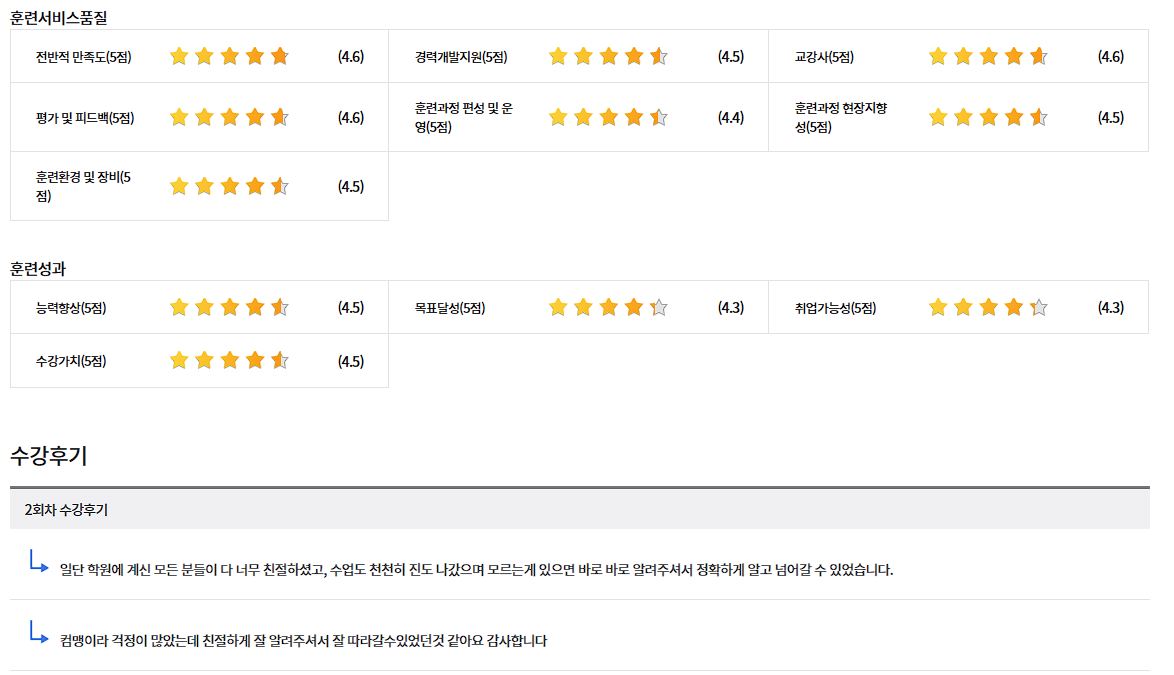 *아래 수강후기는 HRD-Net에 작성된 실제 수강후기의 캡처입니다.